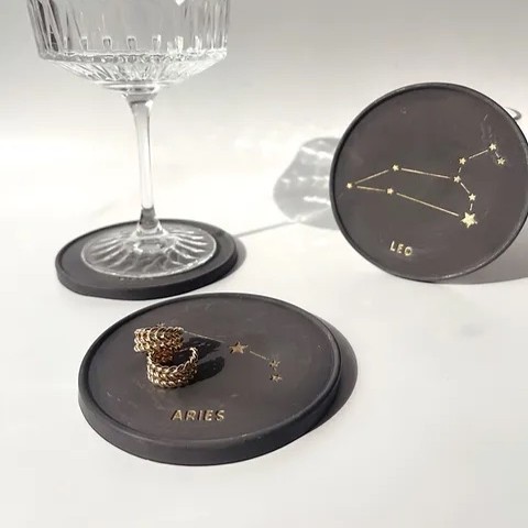 This handmade Jesmonite zodiac trinket dish/coaster is a beautiful and unique addition to any home.